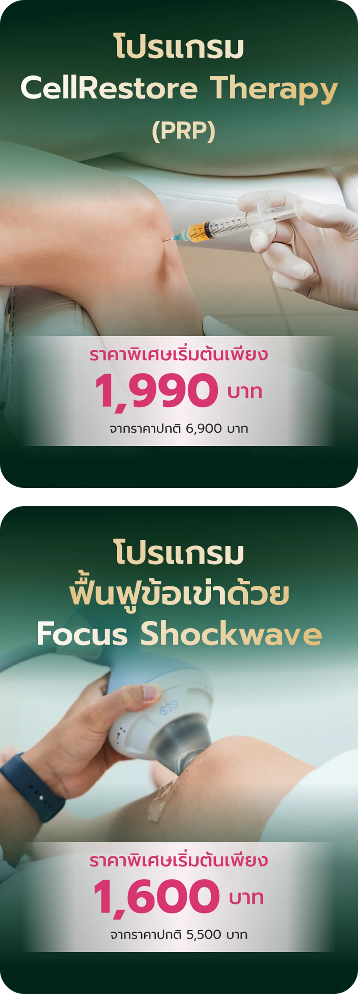 เป็นการฉีดเกล็ดเลือดเข้มข้นจากเลือดของคุณเอง ช่วยลดการอักเสบ ซ่อมแซมกระดูกอ่อน