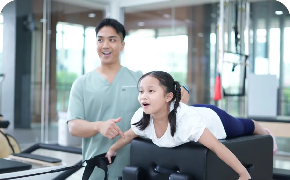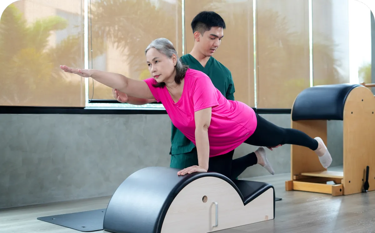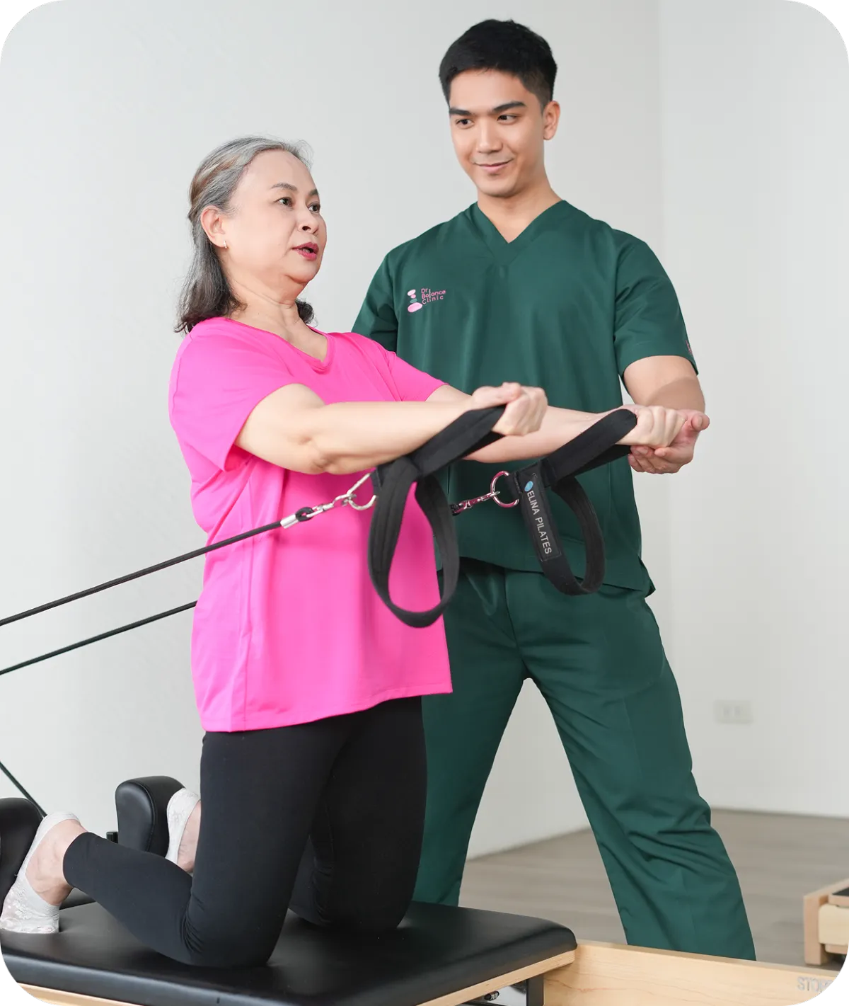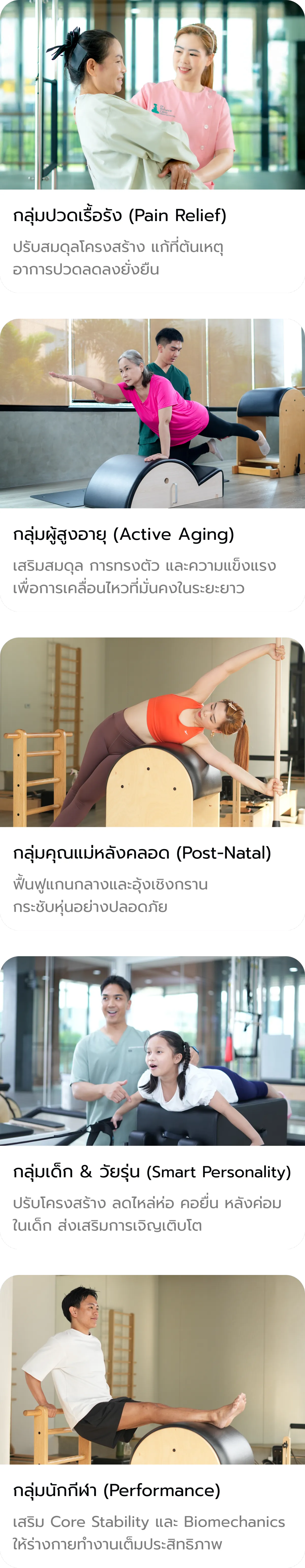 เป็นการฝึกพิลาทิสที่ผสมผสานความรู้ทางกายภาพบำบัดออกแบบโปรแกรมเฉพาะบุคคล