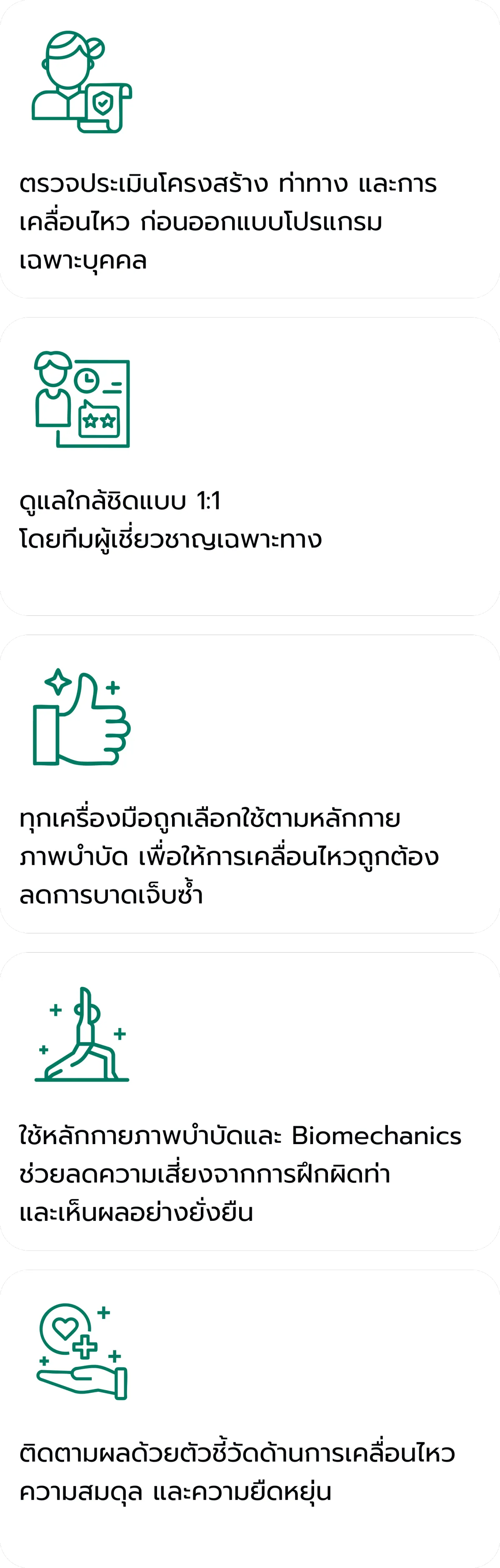 ดูแลโดยนักกายภาพบำบัด เพื่อให้ปลอดภัยและเหมาะกับผู้มีอาการบาดเจ็บหรือปัญหากระดูก/กล้ามเนื้อ